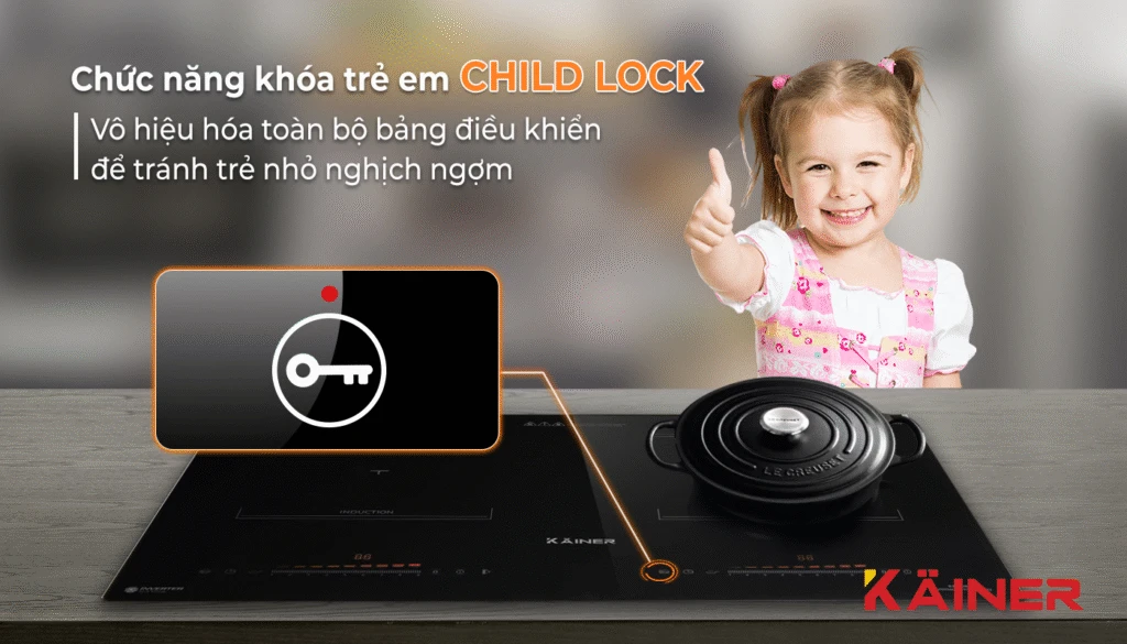Child Lock (Khóa trẻ em): Vô hiệu hóa toàn bộ bảng điều khiển để tránh trẻ nhỏ nghịch ngợm.