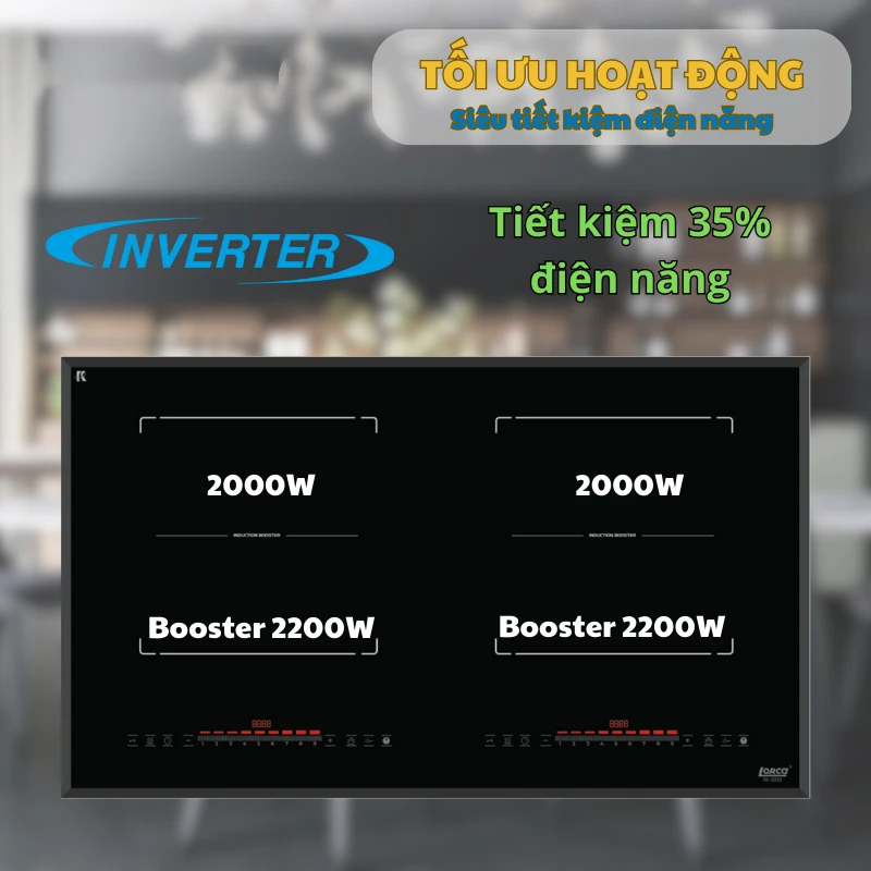 Với công suất 2000W cho mỗi vùng nấu (bếp phải và bếp trái), kết hợp chế độ Booster 2200W, Lorca TA-3033 đáp ứng mọi tác vụ nấu từ xào nhanh đến hầm lâu. Công nghệ Inverter tiết kiệm 35% điện năng, giúp giảm chi phí điện hàng tháng.