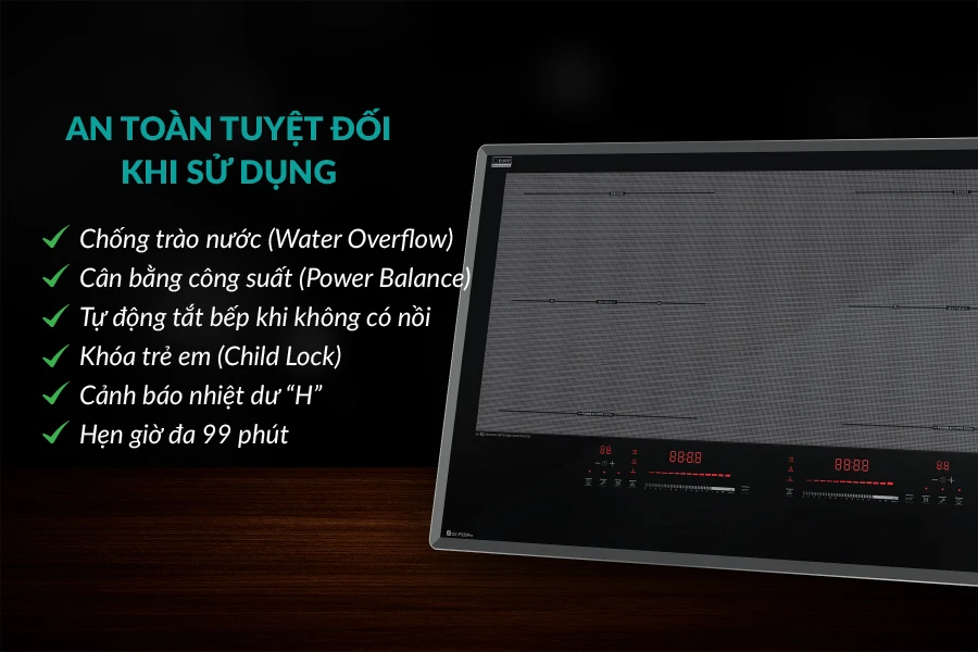 Chức năng chống trào Water Overflow và tự động tắt bếp khi không có nồi.