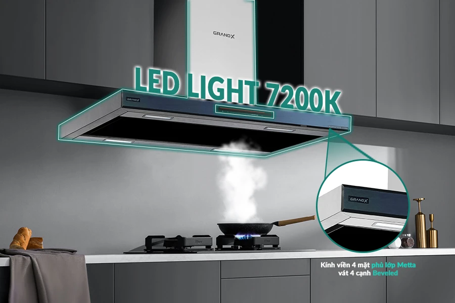 Ánh sáng LED tiết kiệm: Hệ thống 4 đèn LED Light (1.5W x4) ánh sáng 7200K, vừa tiết kiệm năng lượng vừa mang lại không gian bếp ấm cúng và sang trọng.