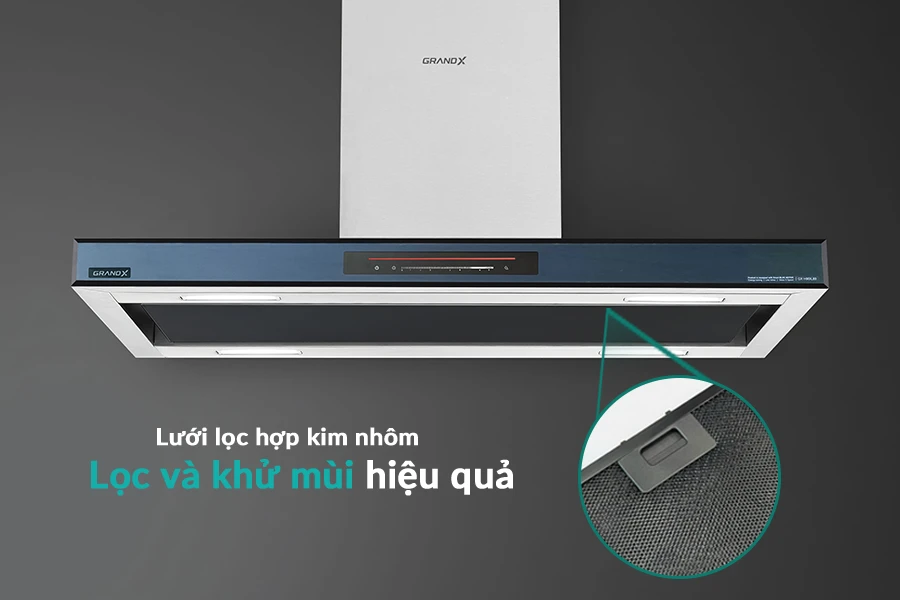 Hút mùi GX H90IL89 được trang bị lưới lọc hợp kim nhôm giúp giữ lại dầu mỡ hiệu quả, kết hợp bộ than hoạt tính khử sạch mùi, mang đến không gian bếp luôn thoáng đãng.