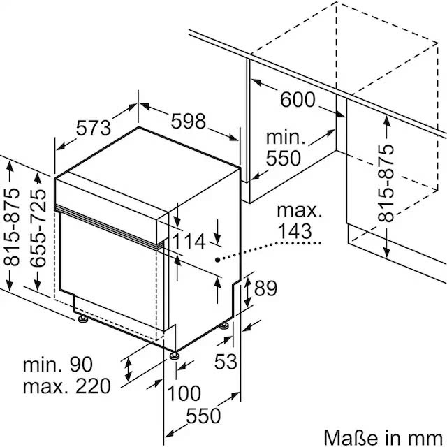 Kích thước máy rửa bát Bosch SMI6YCS02E: 815 x 598 x 573 mm (CxRxS) và khối lượng 43,2 kg.