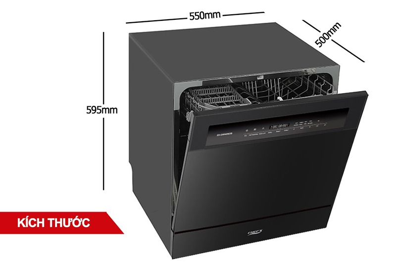 Máy rửa bát Chefs EH-DW408DB có kích thước 595x550x500mm, gam màu đen sang trọng, có thể lắp độc lập, để bàn hoặc âm tủ phù hợp với nhiều không gian bếp. Thiết kế 2 giàn chứa đa năng tiện lợi, có dung tích đến 10 bộ bát đĩa Châu Âu, phù hợp sử dụng cho gia đình từ 4-6 người. Bên trong trang bị 2 giàn rửa rộng rãi, có thể tháo rời để dễ dàng vệ sinh hoặc chứa các vật dụng lớn như nồi, chảo.