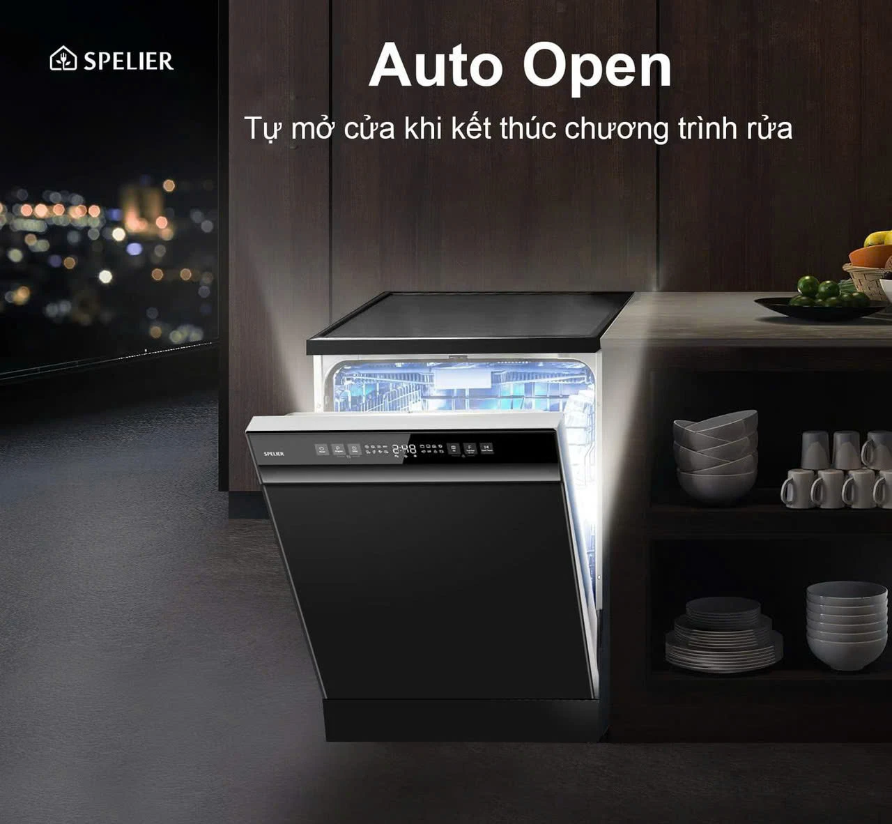 Chức năng tự động hé mở cửa là một tính năng ưu việt của dòng máy rửa bát Spelier SP 15 DW NX BLACK. Với tính năng này, cửa máy sẽ tự động mở khi kết thúc chu trình rửa giúp gia tăng hiệu quả sấy. Ngoài ra, cửa mở còn giúp máy thoát hơi ẩm, đồng thời làm khô ráo bát đĩa một cách nhanh chóng nhất. Điều này sẽ làm giảm sự ngưng tụ của hơi nước, thúc đẩy quá trình sấy khô của bát đĩa hay các vật dụng được tốt hơn.