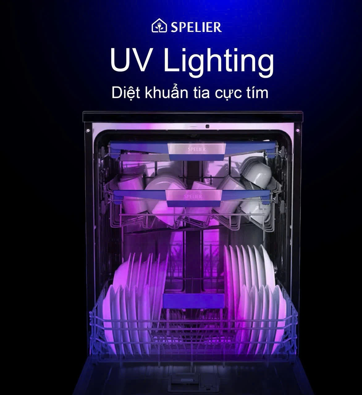 Máy rửa bát Spelier SP 15 DW NX BLACK ứng dụng công nghệ sấy khô bằng khí nóng Turbo Dry công nghệ Hot Wind Dry (PTC) hiện đại kết hợp cùng công nghệ UV Lighting, giúp diệt sạch 99,99% vi khuẩn. Bát đĩa sau khi thực hiện các quy trình rửa thông thường, sẽ được sấy khô và diệt khuẩn. Điều này là điểm vượt trội hơn hẳn so với việc rửa bát thông thường. Bát đĩa sẽ được loại bỏ hoàn toàn vi khuẩn, chất lượng bát luôn sạch sẽ, sáng bóng, giúp bảo vệ sức khỏe gia đình.