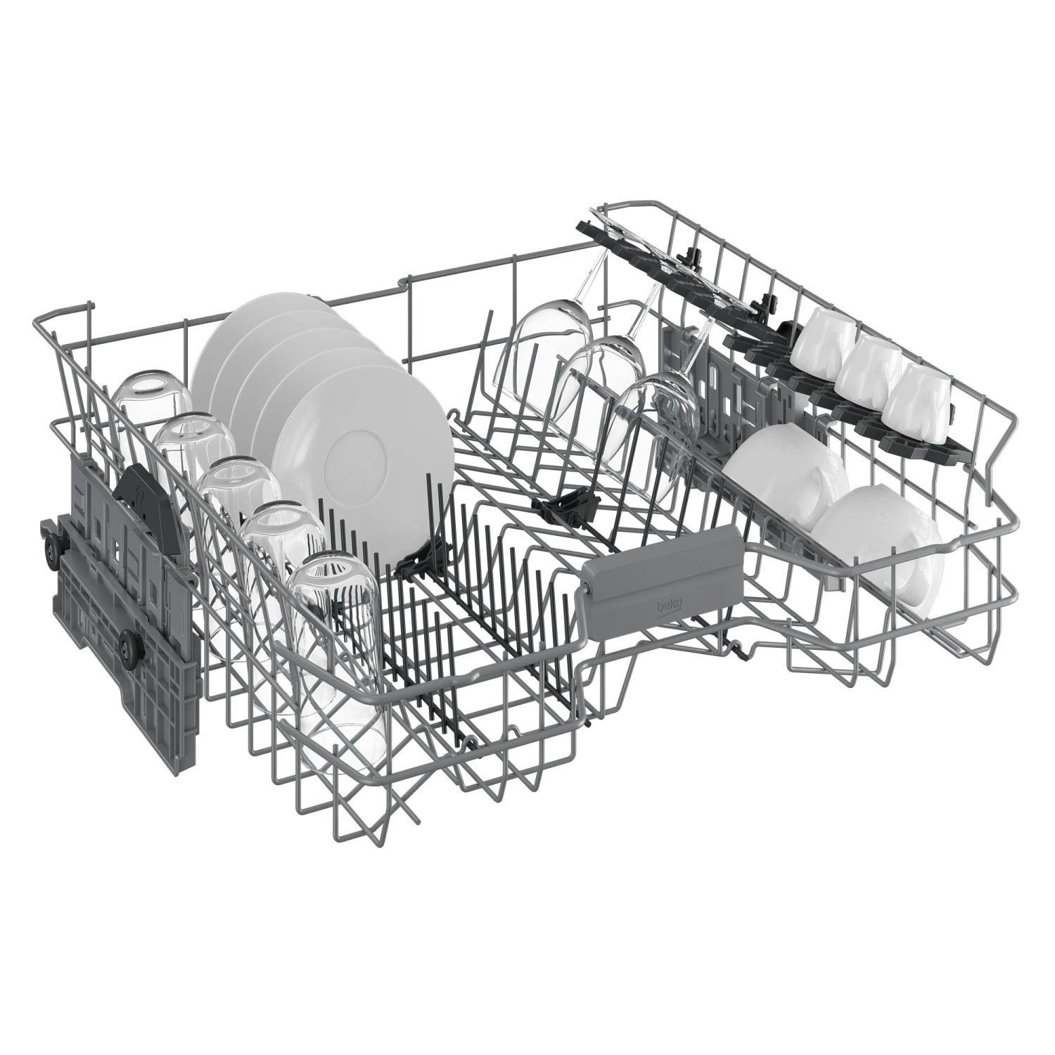 Máy rửa chén Beko BDFN26530X được thiết kế tối ưu với 3 dàn rửa, giúp tăng cường không gian sử dụng bên trong máy rửa. Dàn rửa được thiết kế có thể sắp xếp nhiều loại dụng cụ ăn uống, dụng cụ nấu nướng khác nhau. Đặc biệt là có giỏ thứ ba trên cùng chuyên dùng đựng dao kéo, thuận tiện sắp xếp các dụng cụ nhỏ, sắc nhọn như dao, kéo, đũa, muỗng, thìa, nĩa…