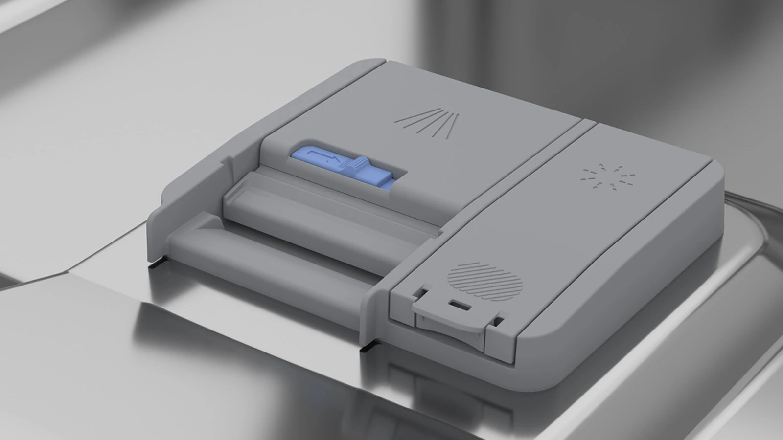 Tại đây, chất tẩy rửa sẽ được hòa tan dần dần và có kiểm soát. Sau khi được pha trộn đồng đều với nước, lượng chất tẩy rửa sẽ được phân bổ đồng đều khắp các khoang máy.