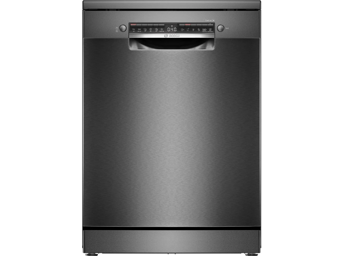 Điểm nổi bật đầu tiên của máy rửa chén Bosch SMS4HMC25M là thiết kế độc lập, giúp người dùng có thể bố trí máy tại bất kỳ vị trí nào trong gian bếp mà không phụ thuộc vào tủ bếp. Thiết kế này vừa tạo sự linh hoạt vừa mang lại tính thẩm mỹ cao. Vỏ máy làm bằng thép không gỉ màu đen, sang trọng, dễ lau chùi và chống hoen gỉ, phù hợp với mọi phong cách nội thất từ hiện đại đến cổ điển.