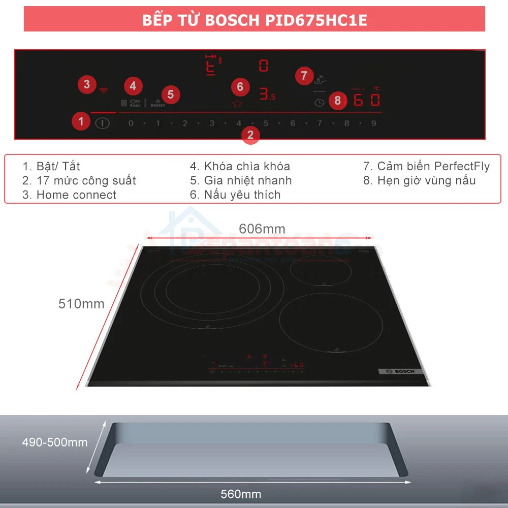 | Tính năng/Thông số | Bếp từ Bosch Series 6 | Bếp từ Bosch Series 8 |