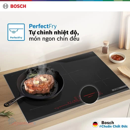 PerfectFry không phải là chức năng giữ công suất cố định, mà là hệ thống kiểm soát nhiệt độ đáy chảo bằng cảm biến. Khi kích hoạt PerfectFry, bếp Bosch sẽ đo nhiệt liên tục và tự động điều chỉnh công suất để duy trì mức nhiệt phù hợp với cấp độ người dùng chọn.