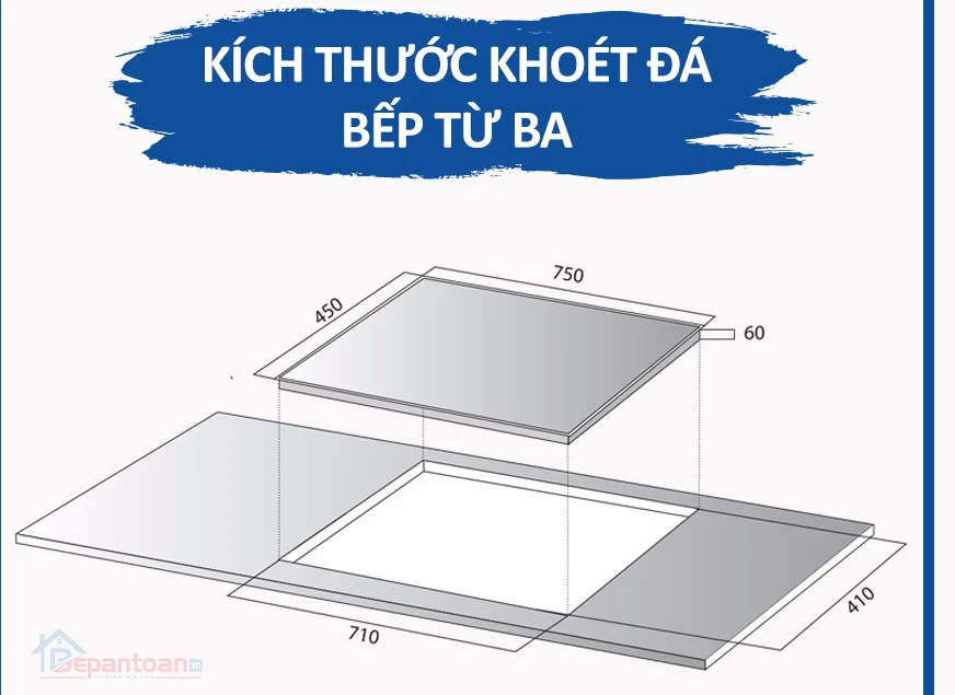 Kích thước cắt đá bếp từ Bosch bao nhiêu là chuẩn?