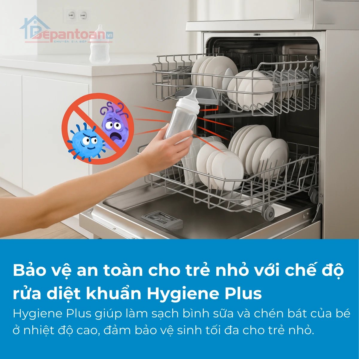 Hygiene Plus của Bosch hoạt động dựa trên việc tăng nhiệt độ nước ở chu trình cuối cùng lên đến 70°C và duy trì nhiệt độ này trong khoảng 10 phút. Nhiệt độ cao này được cho là có khả năng tiêu diệt phần lớn vi khuẩn và mầm bệnh bám trên bát đĩa, mang lại sự an tâm cho người sử dụng, đặc biệt là các gia đình có trẻ nhỏ hoặc người có hệ miễn dịch yếu. Tuy nhiên, mức độ diệt khuẩn thực tế và khả năng loại bỏ hoàn toàn vi khuẩn gây hại vẫn là vấn đề cần được làm rõ.