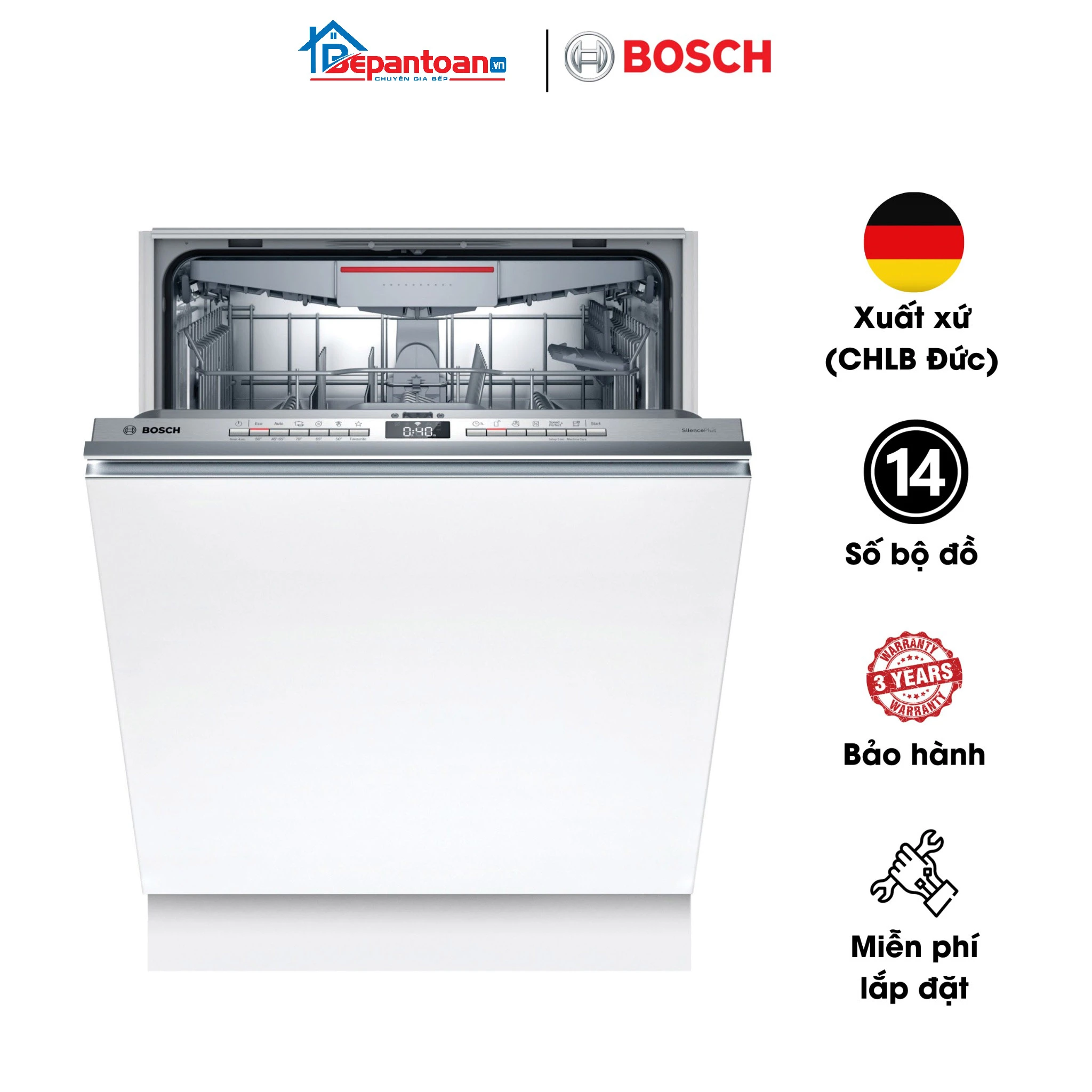 - Đa dạng mẫu mã, đáp ứng mọi nhu cầu: Tại Bếp An Toàn, bạn có thể tìm thấy đầy đủ các dòng máy rửa bát Bosch đang có mặt trên thị trường, từ dòng độc lập, âm tủ đến bán âm tủ, với nhiều mức giá và tính năng khác nhau. Điều này giúp bạn dễ dàng lựa chọn được chiếc máy rửa bát phù hợp nhất với không gian bếp và nhu cầu sử dụng của gia đình.