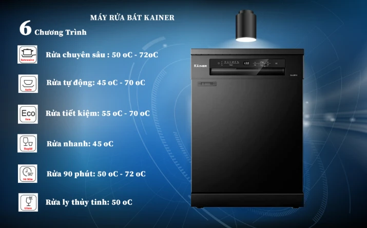 Máy rửa bát Kainer KA-12EU/B là thiết bị hỗ trợ mạnh mẽ trong công việc dọn dẹp bếp núc hằng ngày với hệ thống rửa hiện đại, nhiều chương trình đa dạng và khả năng sấy diệt khuẩn hiệu quả. Nếu bạn đang tìm một máy rửa bát dễ sử dụng, vận hành ổn định và phục vụ tốt nhu cầu sinh hoạt gia đình, đây là lựa chọn đáng cân nhắc.