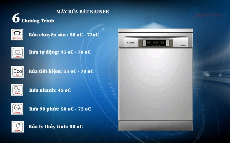 Máy Rửa Bát Kainer KA-15EU/S – Công Suất Lớn, Rửa Sạch Vượt Trội, Tiết Kiệm Thời Gian