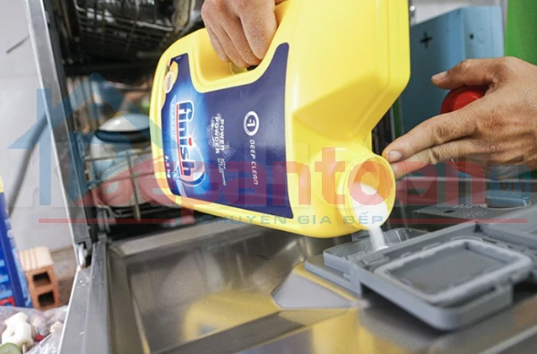 - Bột rửa, viên rửa hoặc gel rửa chuyên dụng cho máy rửa bát