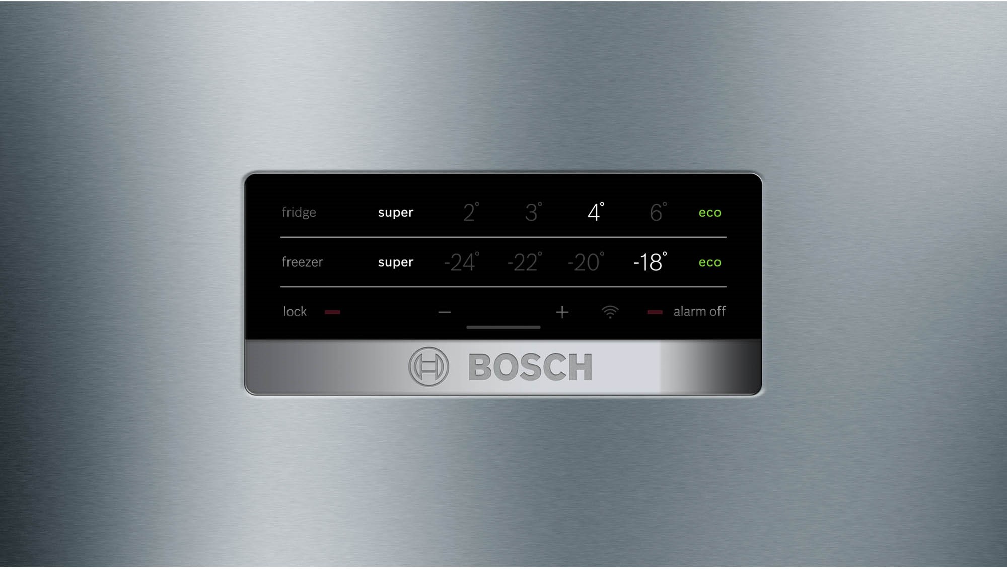 Bảng điều khiển của tủ lạnh Bosch KGN56XI40J cảm ứng một chạm để thuận tiện tùy chỉnh nhiệt độ của tủ lạnh và tủ đông riêng biệt. Có thiết kế tối giản để cài đặt làm lạnh tủ một cách dễ dàng. Điều này giúp người dùng sử dụng được những tiện ích của tủ lạnh đem lại một cách nhanh chóng. Đồng thời kiểm soát được mức nhiệt trong tủ lạnh KGN56XI40J.