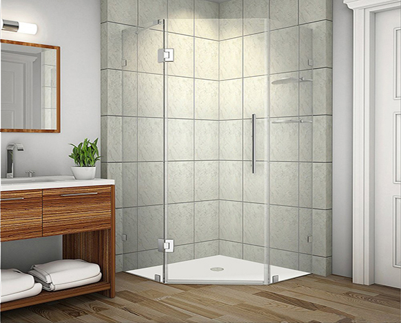 Một trong những mẫu vách tắm kính đứng được lựa chọn nhiều nhất là sản phẩm vách tắm kính góc 135 độ.
