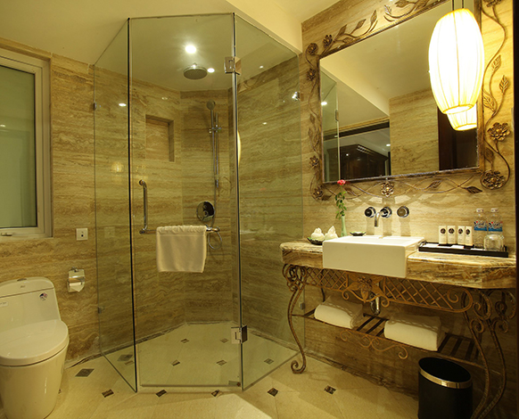 - Bản chất của kính là trong suốt, phụ kiện cao cấp không gỉ nên tạo ra không gian sang trọng của phòng tắm.